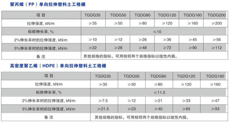 6、擋土墻和橋臺屬于受力結(jié)構(gòu)體,承擔(dān)外部所有荷載:主動(dòng)土壓力、結(jié)構(gòu)體上部的動(dòng)載、溫度應(yīng)力等,加筋材料長期處于較大的張力作用下,以及動(dòng)載的反復(fù)作用下,材料的分子結(jié)構(gòu)產(chǎn)生疲勞,其性能發(fā)生衰減,加速格柵的老化。為避免結(jié)構(gòu)因加筋材料的蠕變而產(chǎn)生較大變形,應(yīng)選擇以高密度聚乙烯(HDPE)為原料的單向塑料土工格柵。