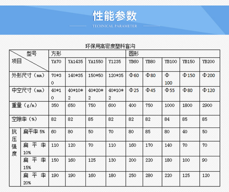 6、由于有以上特點,故對以往傳統(tǒng)盲溝出現(xiàn)的各種問題,如不均勻沉降或因超載引起部分閉塞,被壓壞導致空隙全無引起功能中斷的問題,可通過塑料盲溝材解決。
